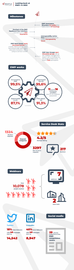 After years of work by teams across Europe, 2022 was the year in which the Erasmus Without Paper (EWP) became a concrete reality. Many Higher Education Institutions (HEIs) transitioned to digitally exchange Inter-Institutional Agreements and Learning Agreements. In this article, we will look back at the main accomplishments of the past year.